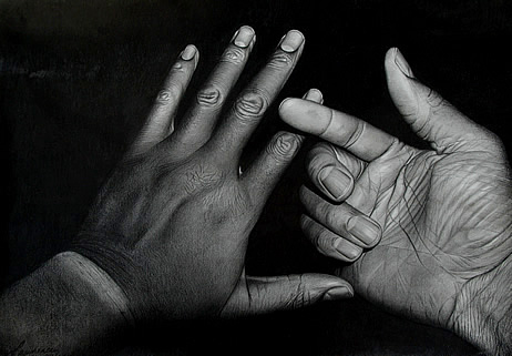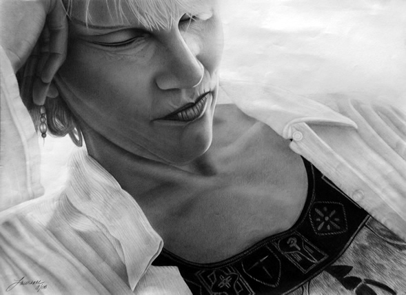 The artwork on display here is graphite (pencil) on 14 x 17 or 18 x 24 paper. I work in a "photorealist" style similar to artists Chuck Close and Robert Bechtle who use photographs as reference material. These works are all hand drawn and are not conversions from photos using any software rendering techniques, i.e. Photoshop. Each drawing takes many hours to complete.